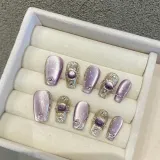 Yun Yue Joe BUCCELLATI Сатин Кошачий глаз False Nail Короткий LADDER Фиолетовый Однотонный Flashing 15mm