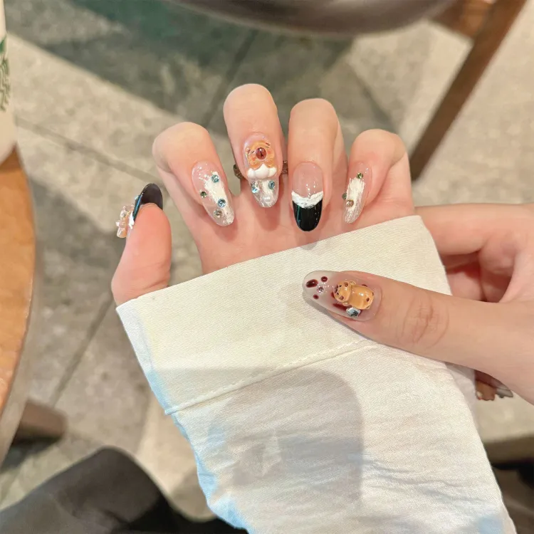 Yun Yue Joe Cartoon Cute Медвежонок Ручной работы с детским украшением Жемчужный False Nail Овал Укороченный 20 мм