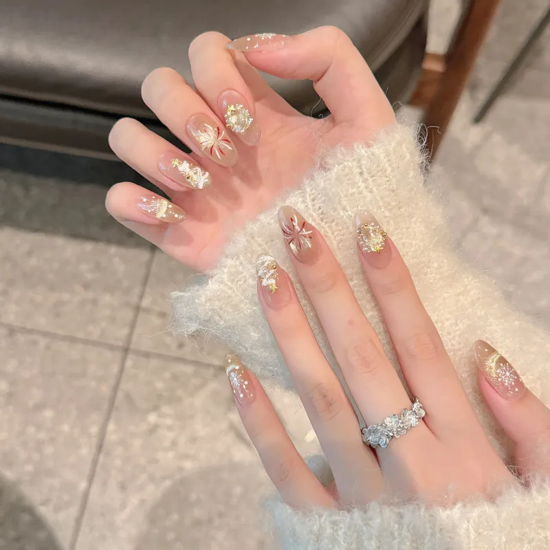 Yun Yue Joe Cartoon Cute Снежинка Фейерверк False Nail Миндаль Мягкий Градиентный Flashing