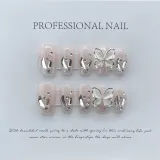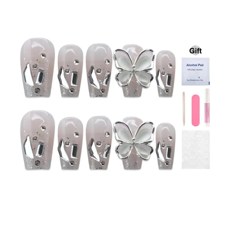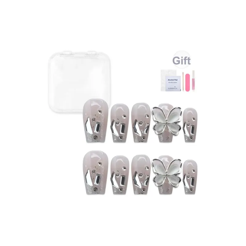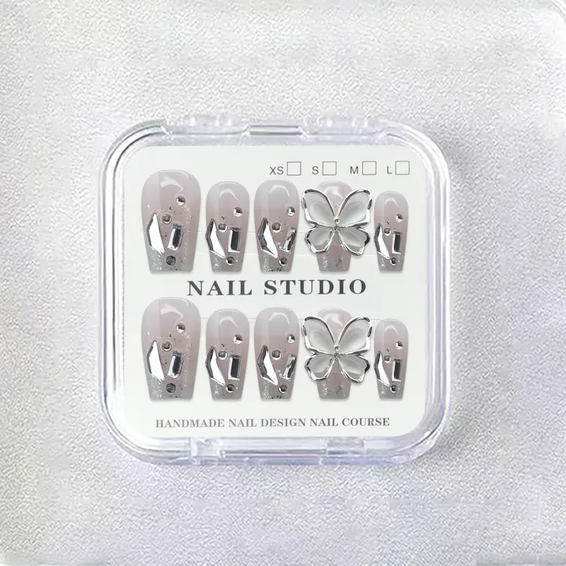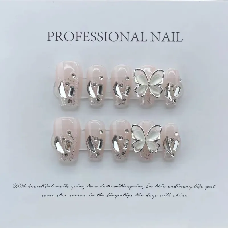 Yun Yue Joe Кошка's Eye Ромб Бабочка Искра Ручной Nail Art Осветляющий Розовый Cool False Nail Короткий LADDER 20mm