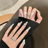 Yun Yue Joe Осенний Зимний Shimmer Белый Рождество Aurora 3D Эффект Snowflake False Nail Длинный 30MM