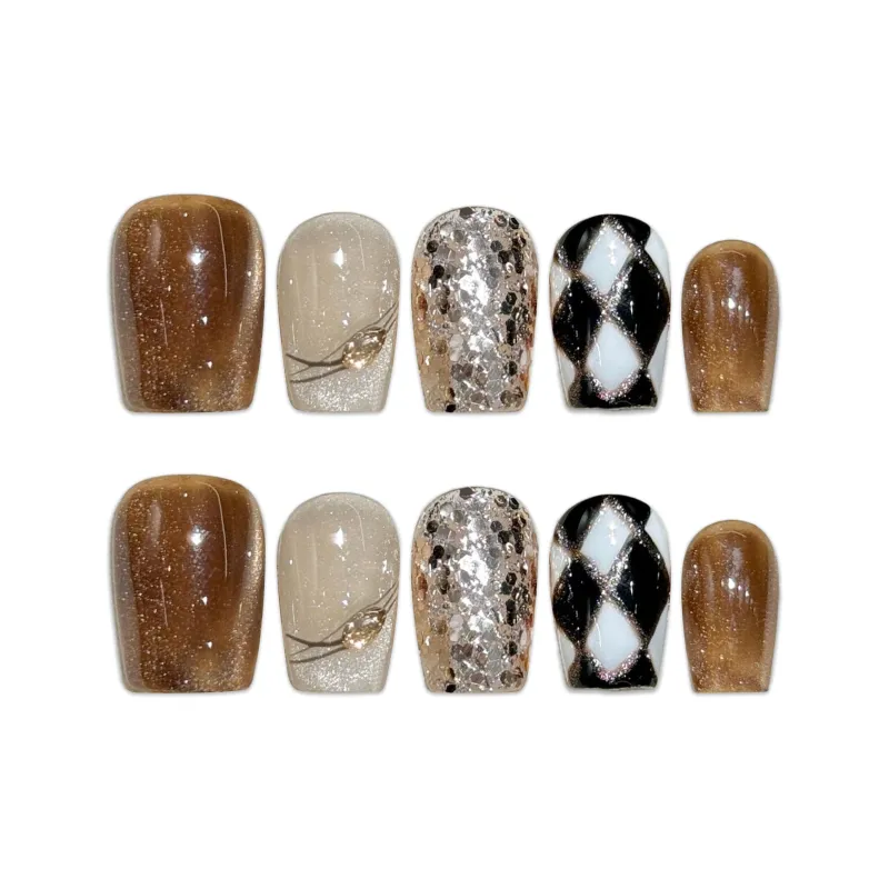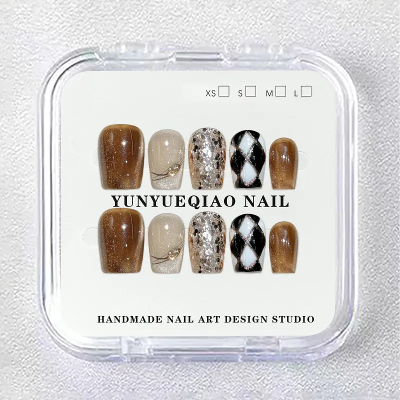 Yun Yue Joe Модный Премиум Блестки Кошачий глаз Осветляющий False Nail Короткий LADDER 15 мм