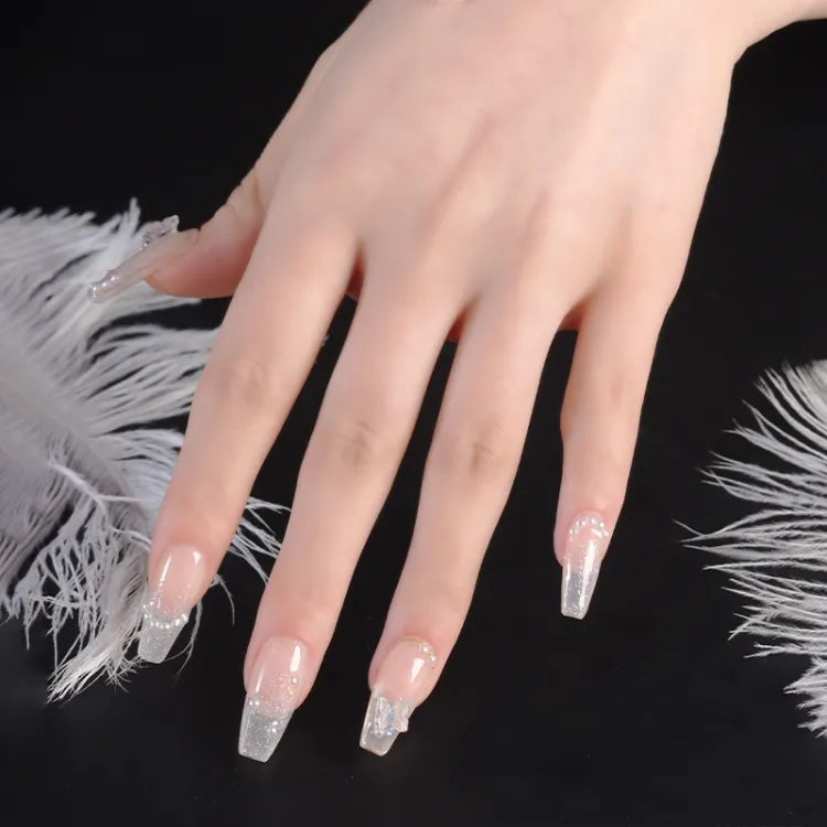 Yun Yue Joe Французский Осветляющий Ромб Жемчужно-розовый Сияние Мягкий False Nail Средний LADDER 25 мм