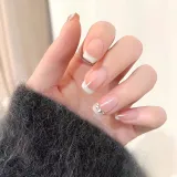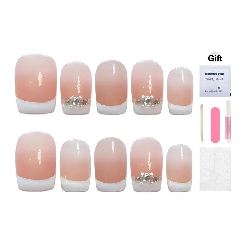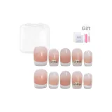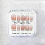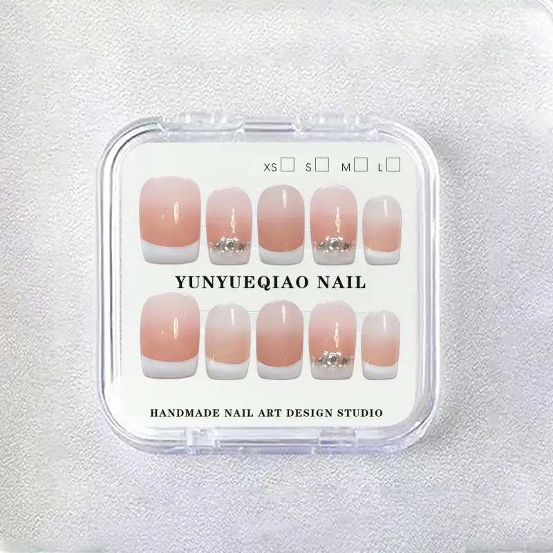 Yun Yue Joe Французский Premium Crystal Эксклюзивный Мягкий Французский Осветляющий Персиковый Градиент False Nail Короткий Квадратный 15 мм