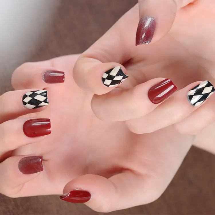 Yun Yue Joe Градиентный Cat Eye Diamond Цветочный Осенний Зимний Best Selling Осветляющий False Nail Короткий LADDER 15 мм