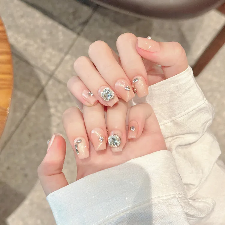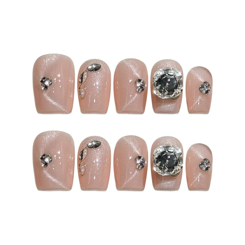Yun Yue Joe Ручной работы Сверкающий горный хрусталь Роскошь False Nail Короткий LADDER 15 мм