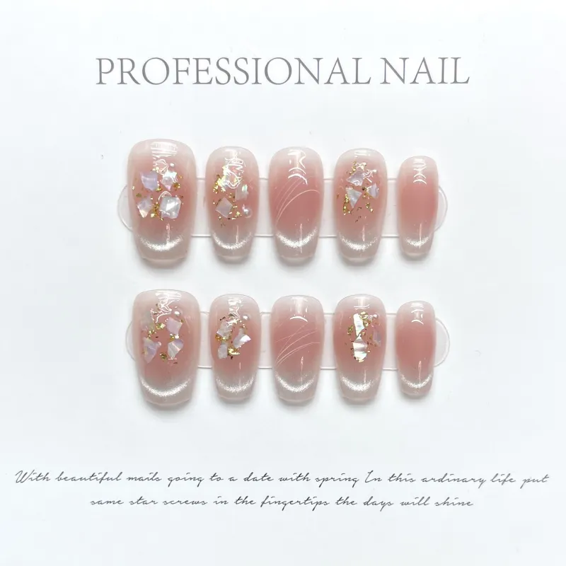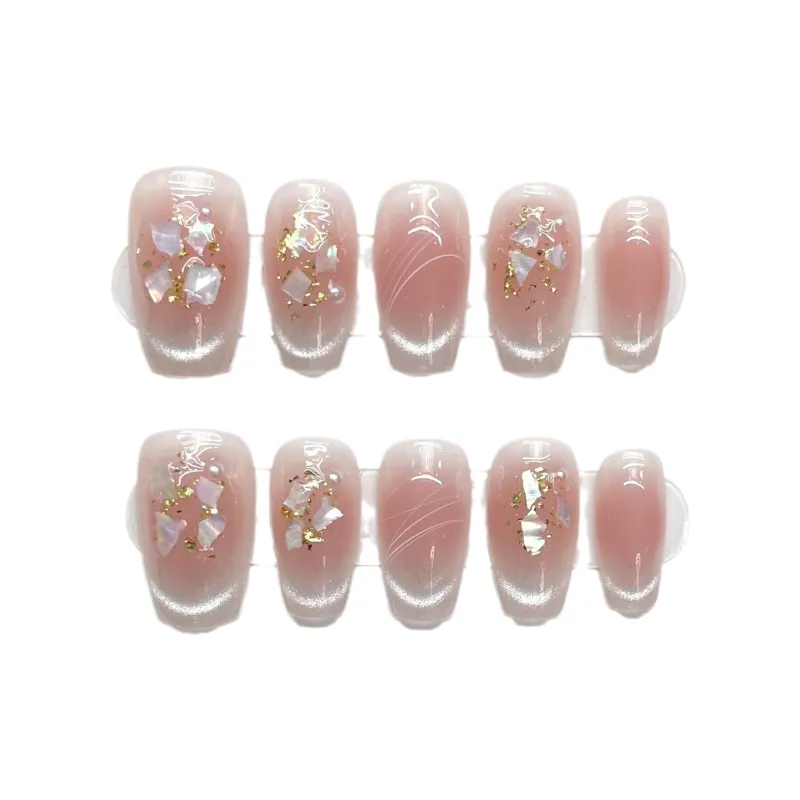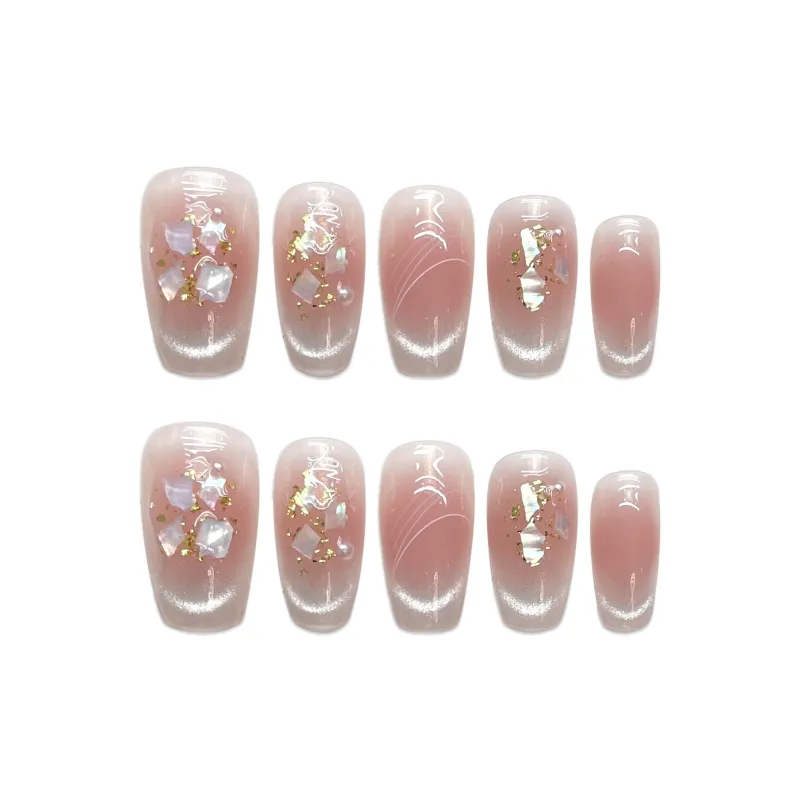 Yun Yue Joe Ледяной Белый Жемчужный Shell Румяна Осветляющий Розовый Смешанный Мягкий False Nail Короткий LADDER 20 мм