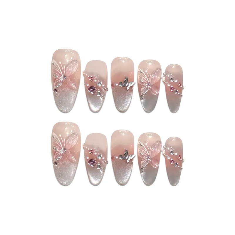Yun Yue Joe Ледяной Прозрачный Бабочка Розовый Градиентный False Nail Средний LADDER Кошачий глаз 25 мм