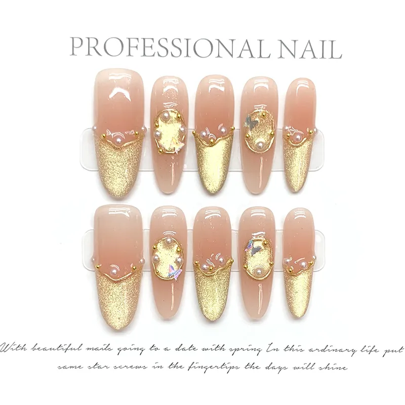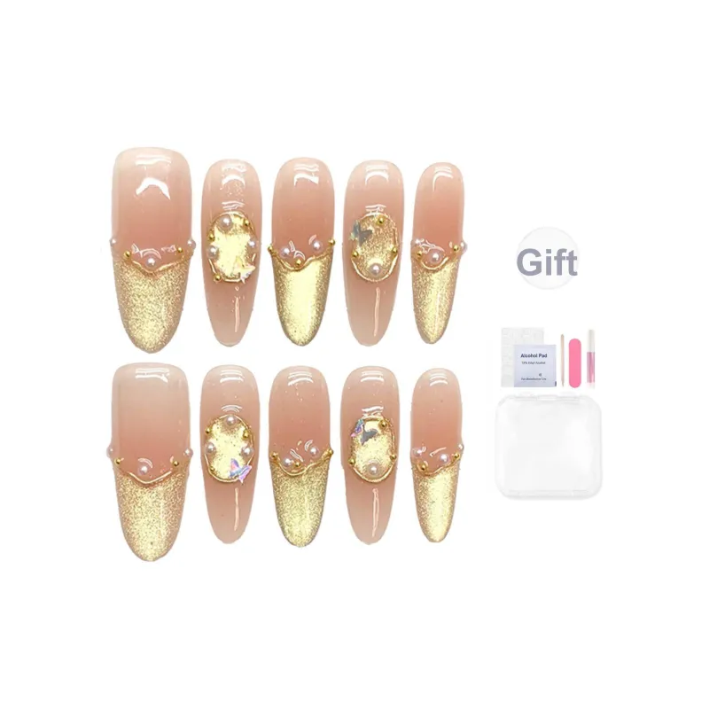 Yun Yue Joe Роскошный Ручной Работы Искусственный Ногтик Овал Золото Градиентный Блеск