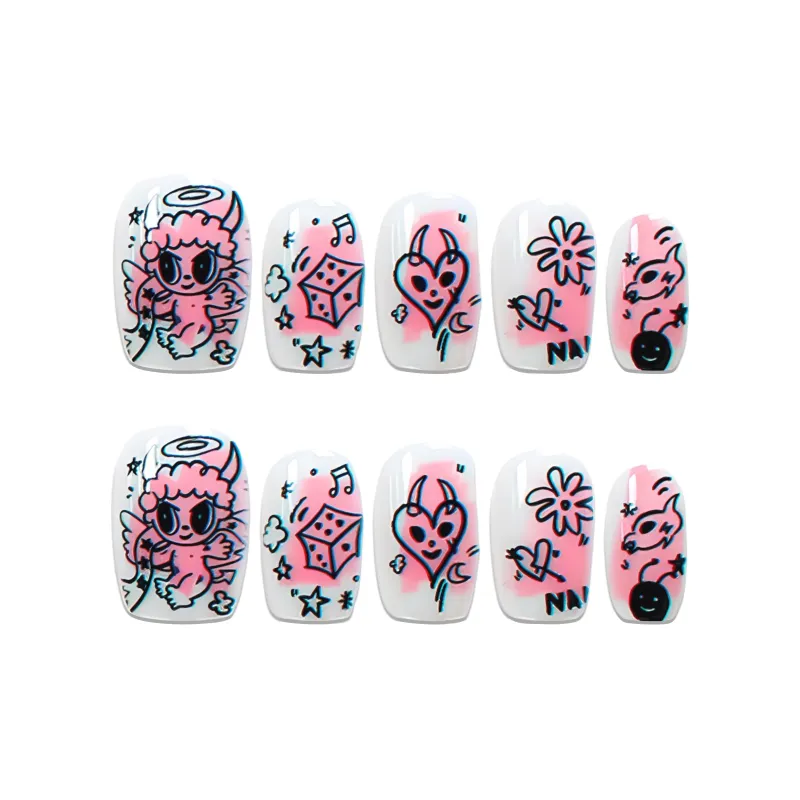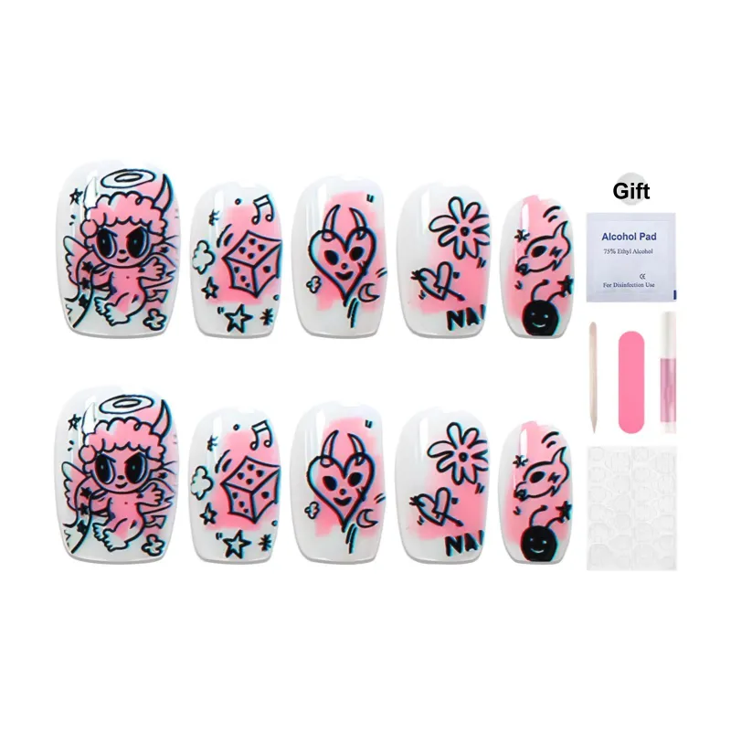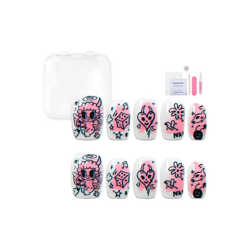 Yun Yue Joe Miao XIANG Граффити Милый Детский Осветляющий Мультяшный Розовый False Nail Короткий LADDER Розовый Jump Цвет 15мм