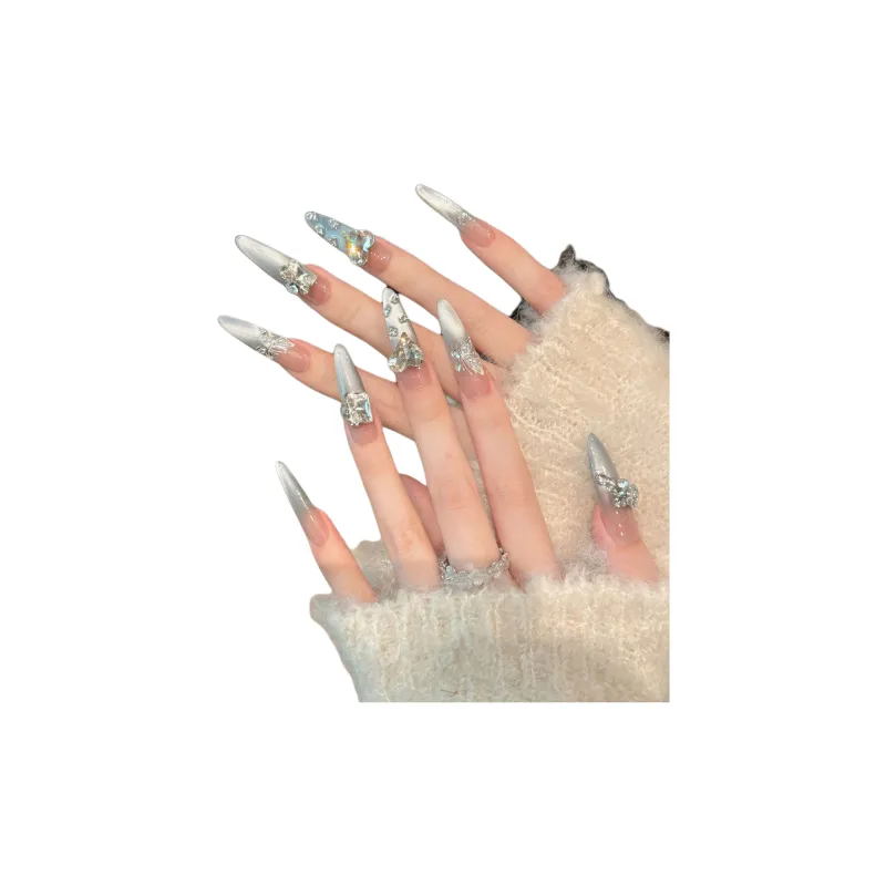 Yun Yue Joe Ocean Эльф Premium Handmade Cat Eye False Nail 30MM Заостренный Тип Light Blue Gradient Flashing