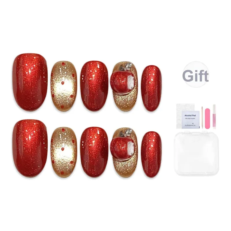 Yun Yue Joe Мирное яблоко Один укус яблока False Nail Короткий LADDER Красный Jump Цвет Кошачий глаз 15 мм