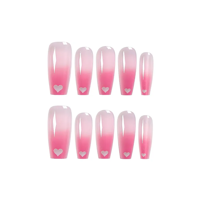 Yun Yue Joe Розовый Градиентный Сердце Осветляющий Кошачий глаз Персиковый Девичий False Nail Средний LADDER 25 мм