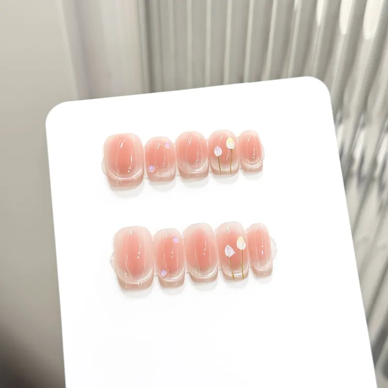 Yun Yue Joe Qinshui Капелька Тюльпан Улыбка Кошачий глаз False Nail Средний LADDER Розовый Градиентный Coquette 20мм