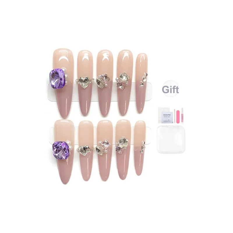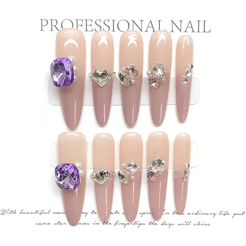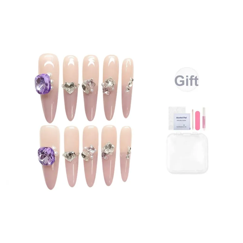Yun Yue Joe Клубничный Ледяной PURE Handcrafted False Nail Короткий Трапеция Tip Фиолетовый Смудж Флешинг