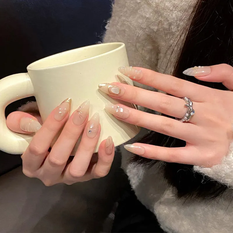 Yun Yue Joe Лето Heartfelt Кошачий глаз PURE Handcrafted Маленький False Nail Almond Nude Однотонный Coquette