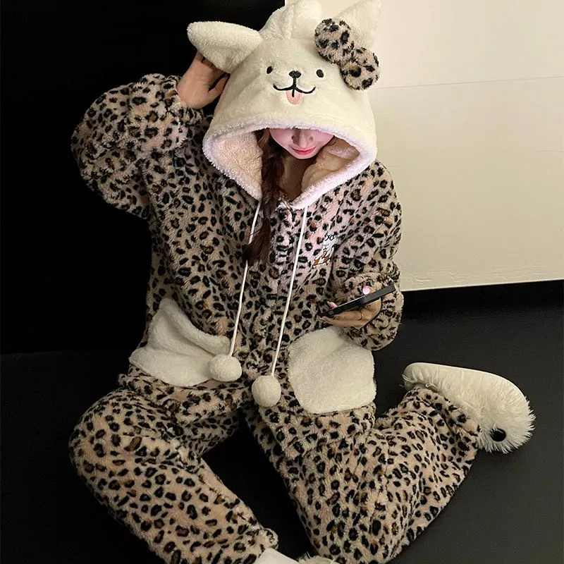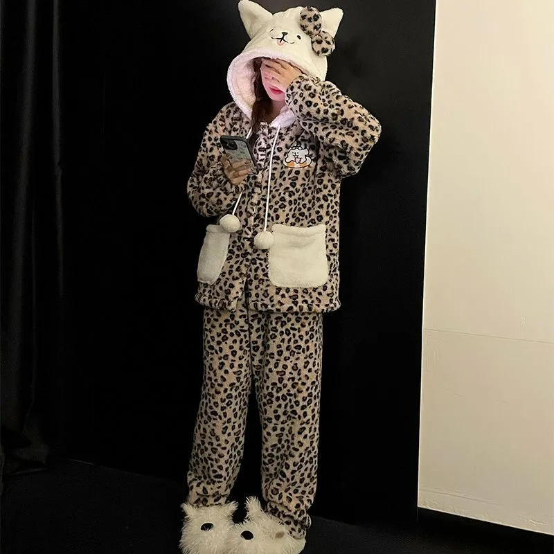 Цвет:Милый комплект пижам с леопардовым принтом