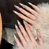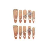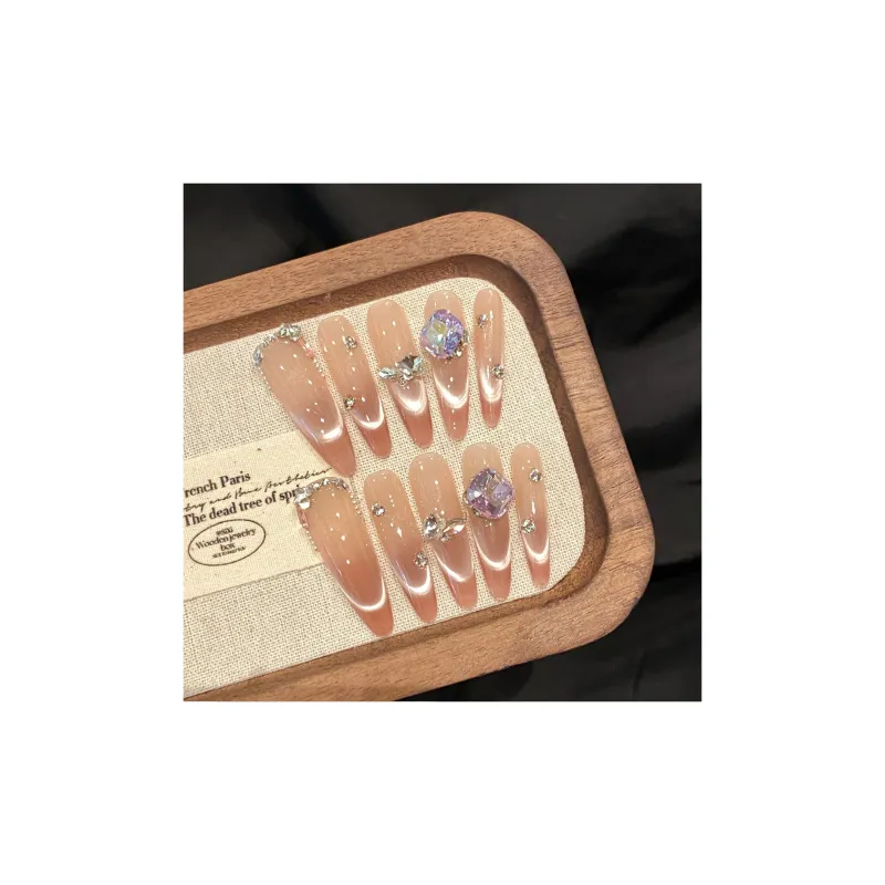 YUNYUEQIAO Французский Smile Cat Eye Nude Gradient Sparkling Cool Crystal High Quality Detachable False Nail 30mm