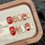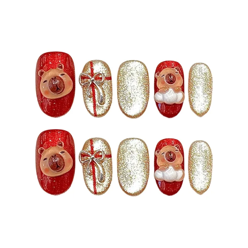 YUNYUEQIAO Капибара Осень и зима Cute Cartoon Укусы щек Кошачий глаз Съемный Handcrafted False Nail 20 мм Овал Красный