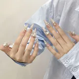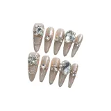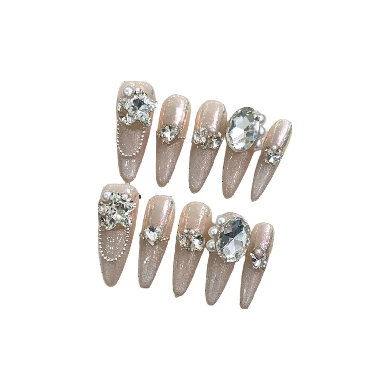 YUNYUEQIAO Ручной Premium Pure Роскошь Свет Лампочка Кошачий глаз Сверкающий страз False Nail Овал Длинный Мягкий