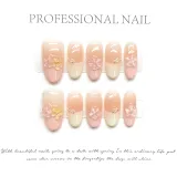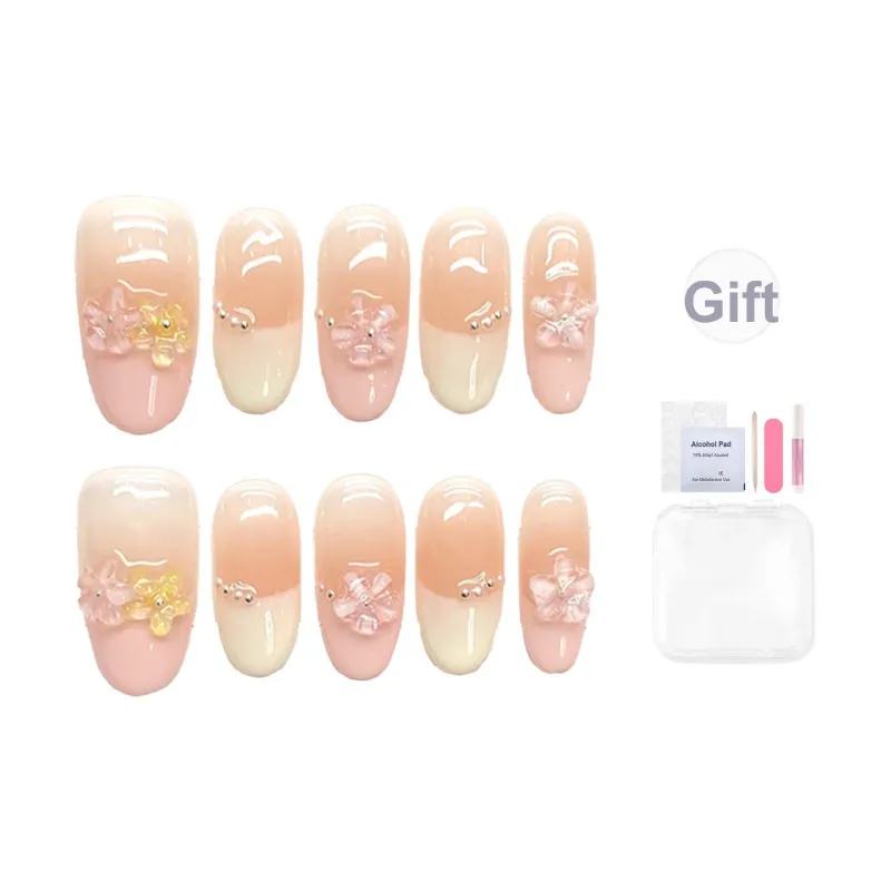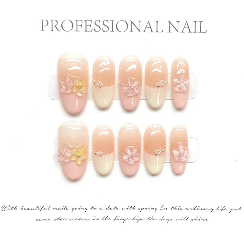 YUNYUEQIAO Премиум HAND DRAWN Радужный Броги In Телесный And Румяна Французский False Nail Миндаль Дофаминовая одежда