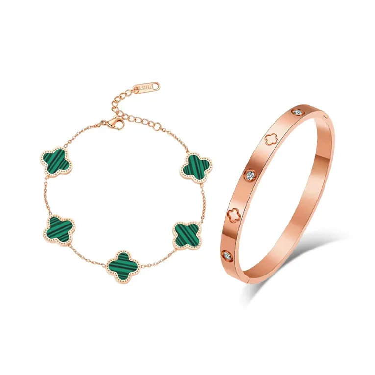 Стиль:Браслет с кулоном в виде четырехлистного клевера, цепочка, зеленый
