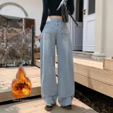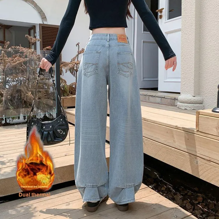 ЮЙЧЖАОЛИНЬ Синий Утолщенный и с Флисовой Подкладкой Женские Джинсы
