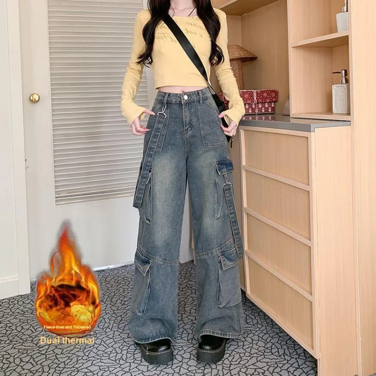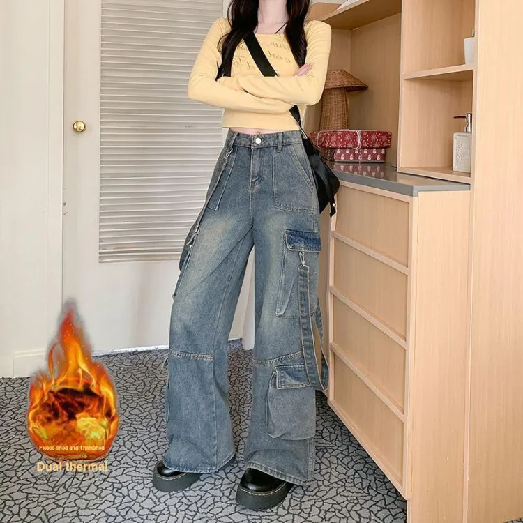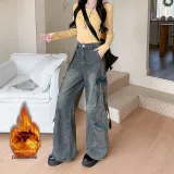 ЮЙЧЖАОЛИНЬ Синий Утолщенный и с Флисовой Подкладкой Женские Джинсы