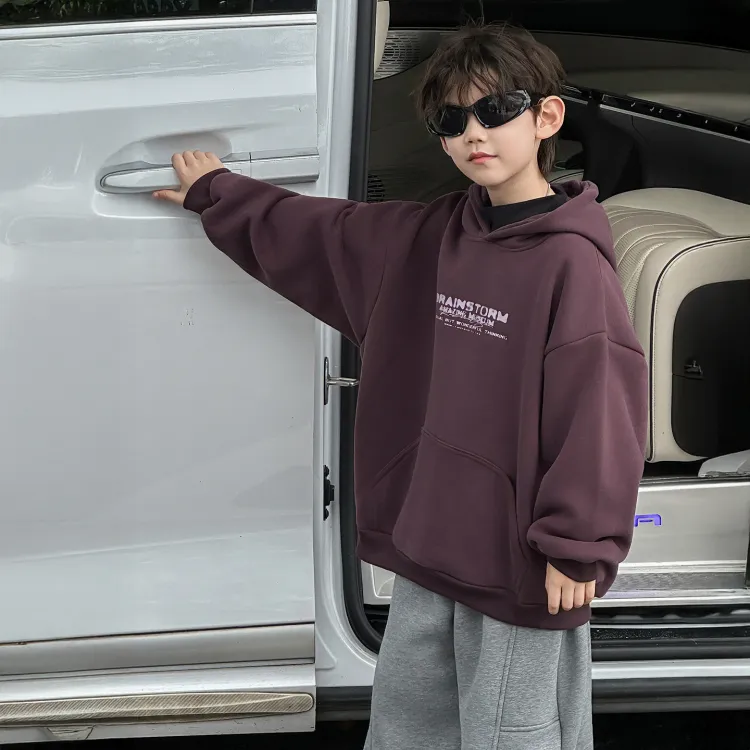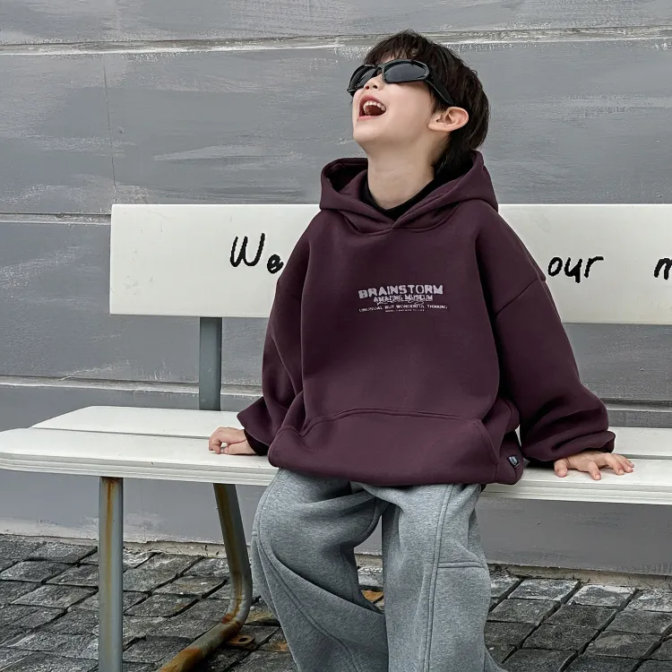 YUZHAOLIN С принтом с капюшоном флисовая подкладка худи и свитшоты темно-фиолетовый для детей свитшоты