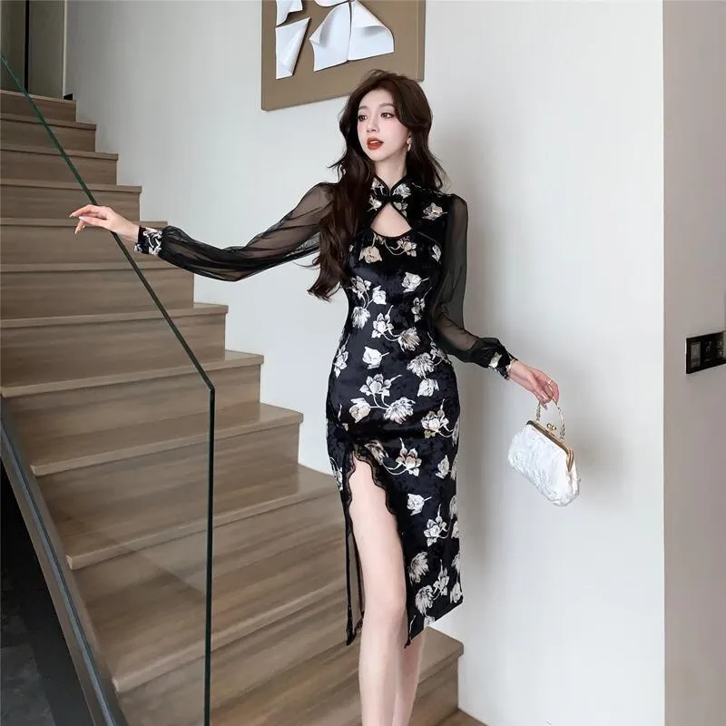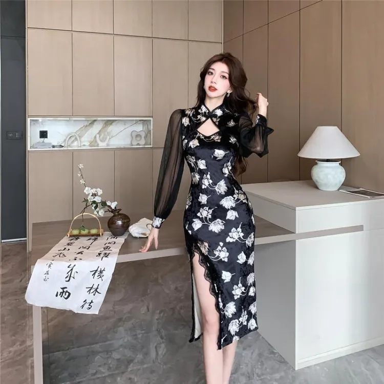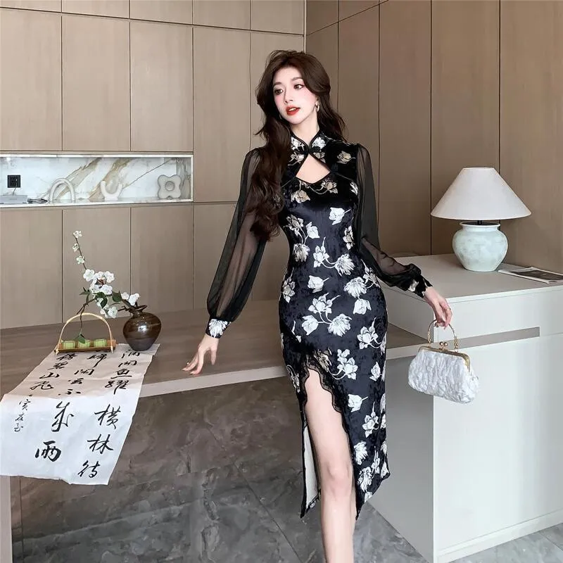 ЮЙЧЖАОЛИНЬ Длинное платье с длинными рукавами женское