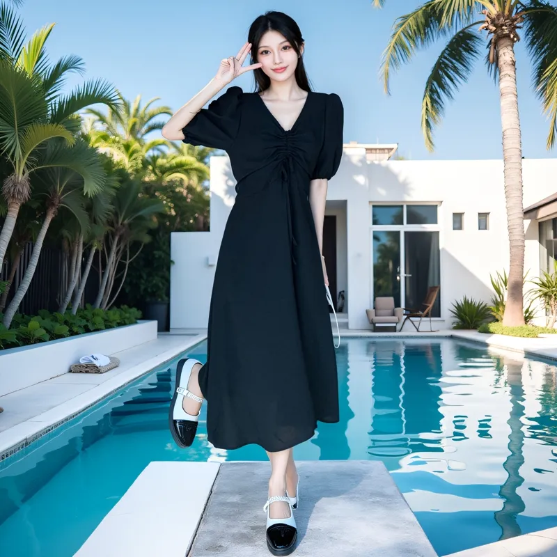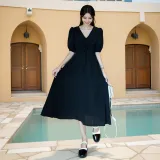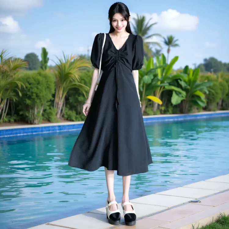 Yvetteclassic Короткий рукав Платье Женское Черное