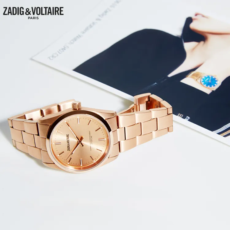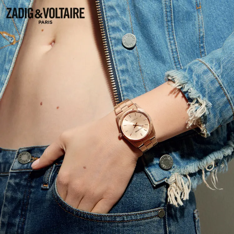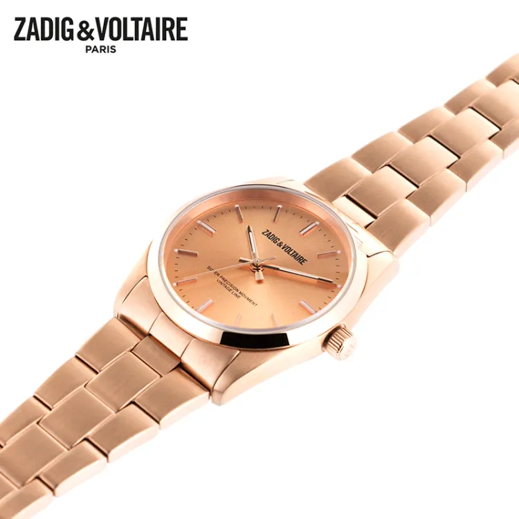 Zadig Voltaire Fusion Collection Кварцевые Мужские Наручные Часы Стальной Ремешок 33 мм Золотой Циферблат Мужские Часы ZVF230