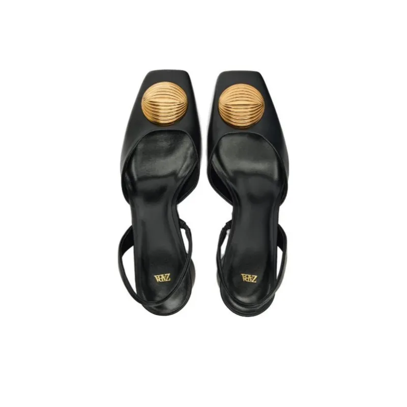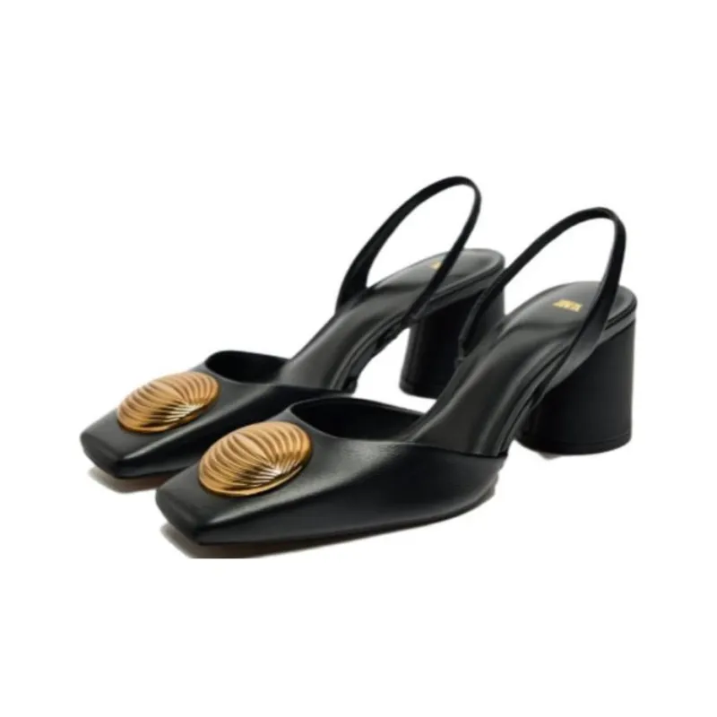 ZARA Грубый каблук Высокие каблуки 6 см Женские Черный Золотой