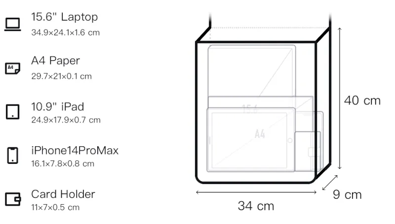 Длина 34 см * Ширина 9 см * Высота 40 см