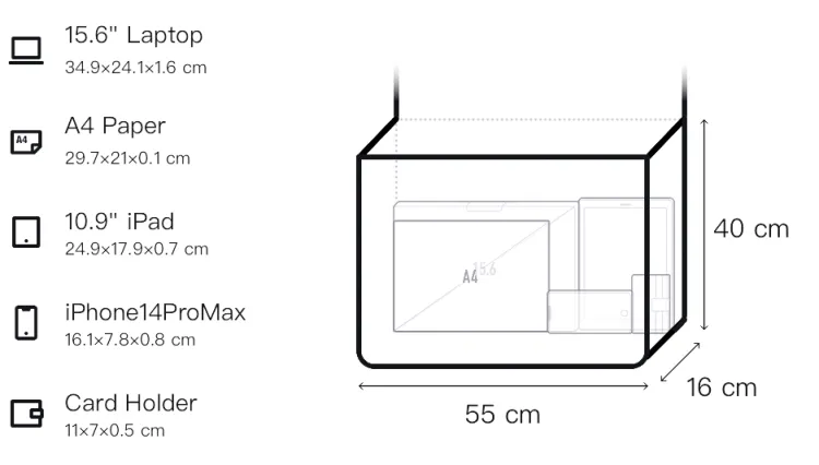 Д55*Ш16*В40см