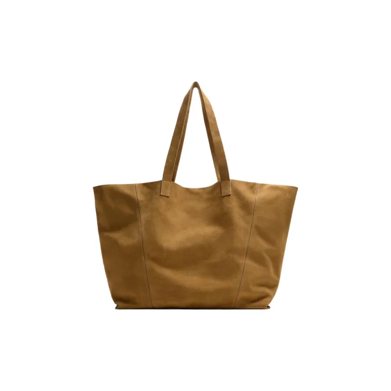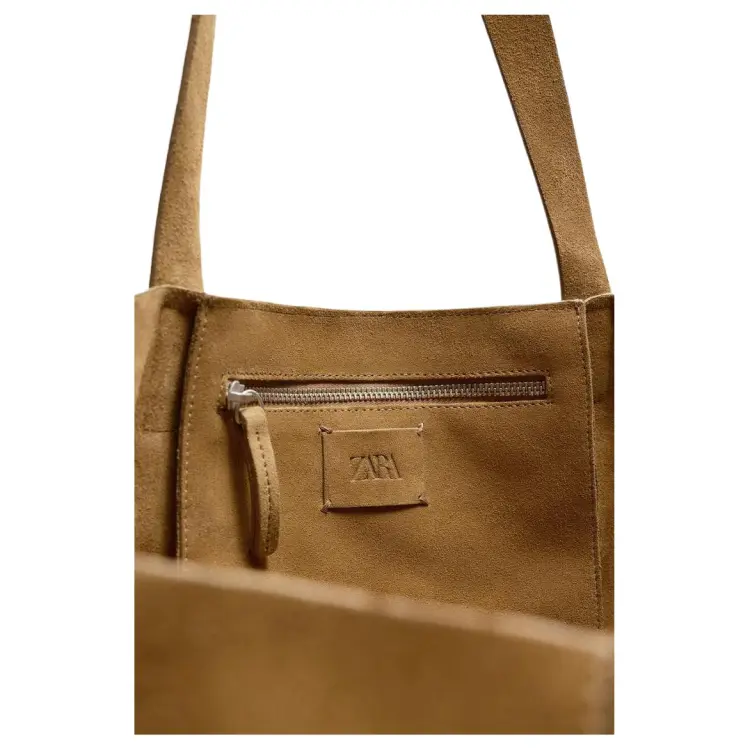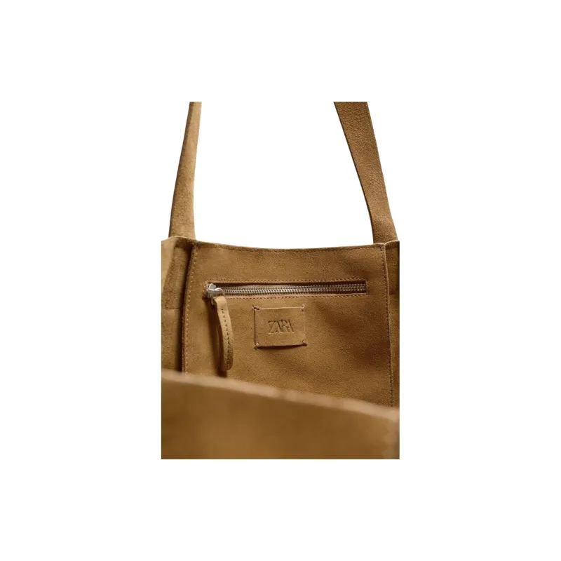 ZARA Коровья кожа Тоут Сумка Сумка для покупок Сумка на плечо Унисекс Карамельно-коричневый