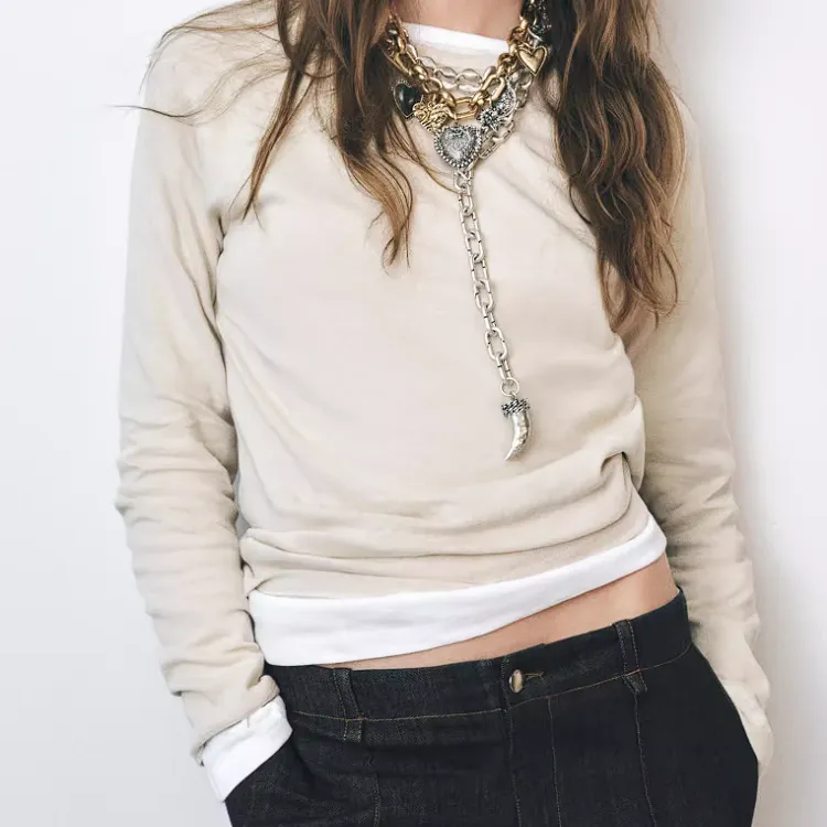ZARA Металл Цинк Железо Эпоксидная смола Стекло Ожерелья Женские Золотой
