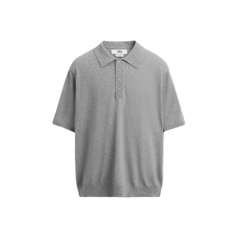 ZARA Поло Мужское с зебровым принтом Серого цвета