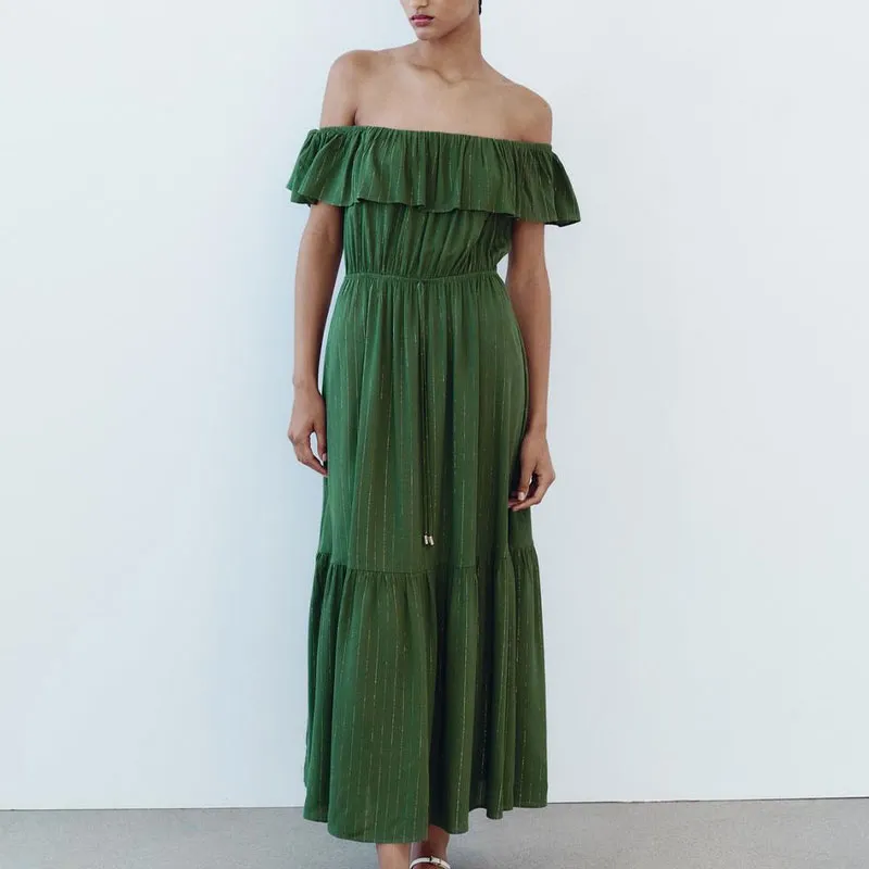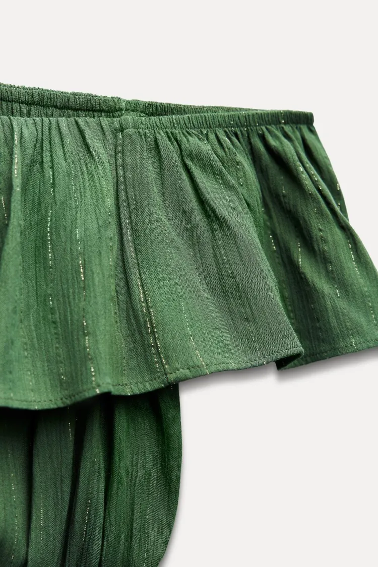 ZARA Collaboration Короткое платье с короткими рукавами женское зеленое