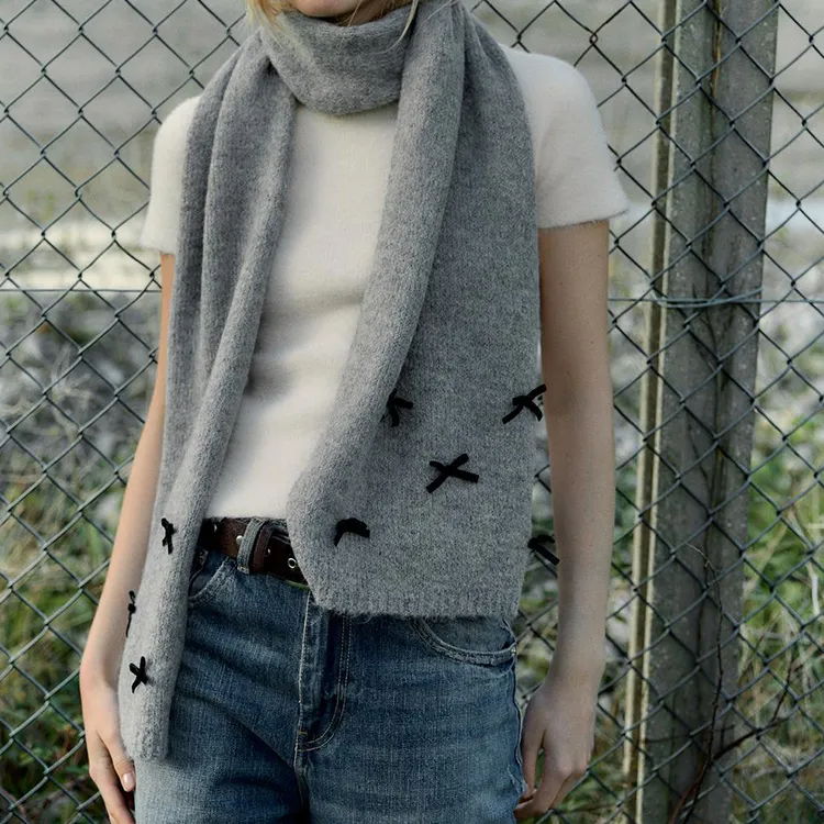 ZARA Шерсть Альпака Бархат Акрил Полиамид Полиэстер Эластан Вязаные шарфы Женские Серый