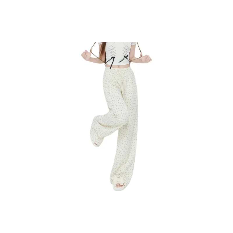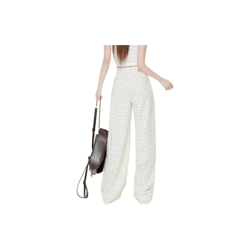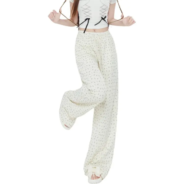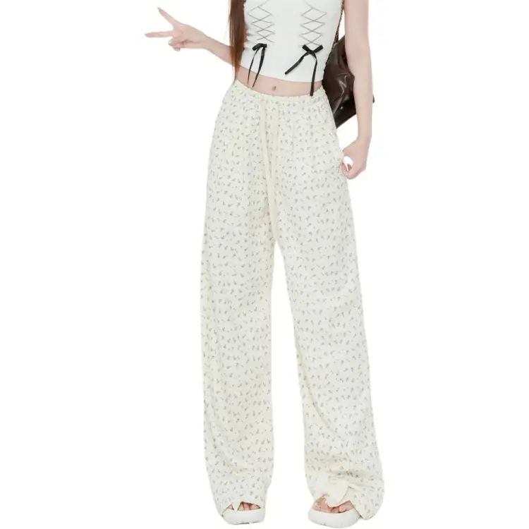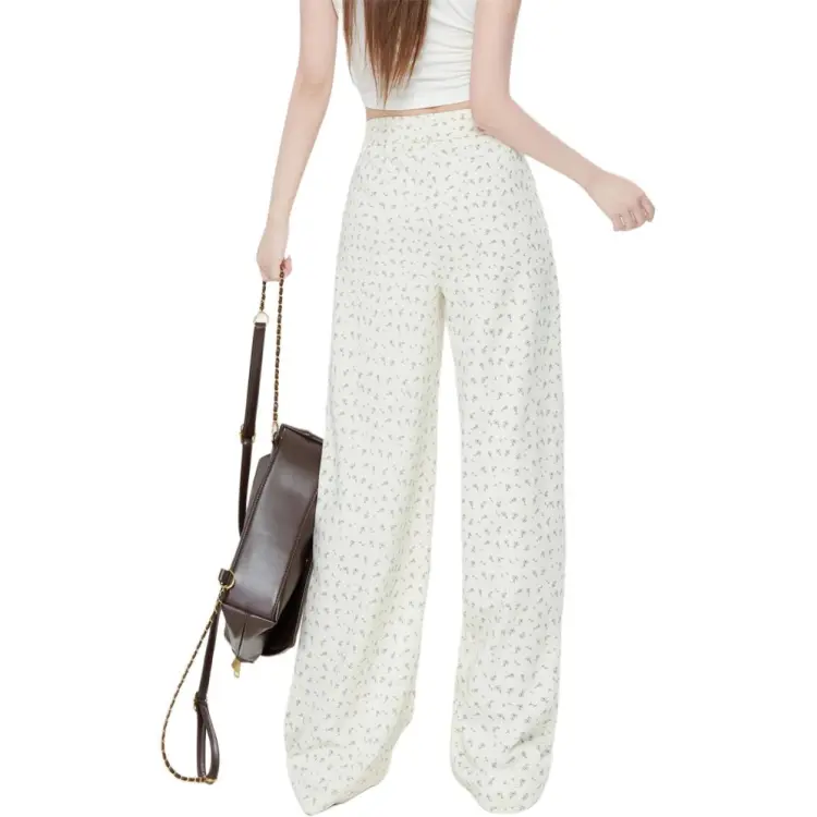 ZAVK Повседневные брюки Женские Цветочные Белые