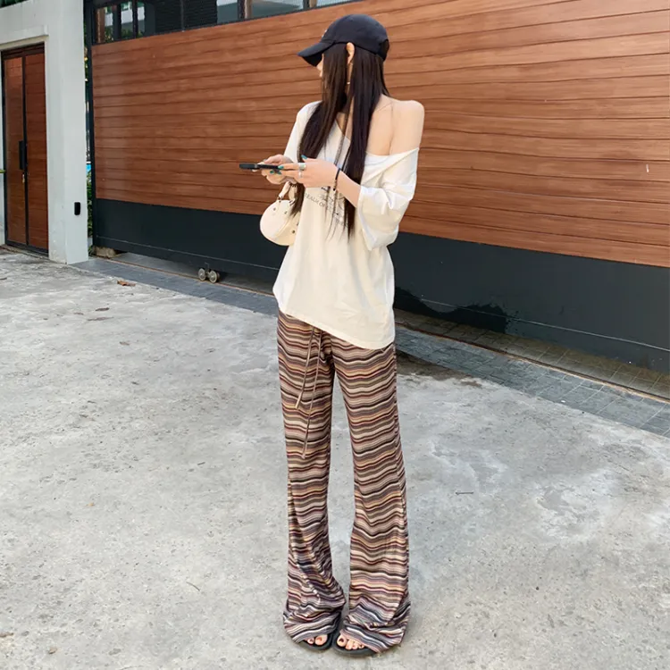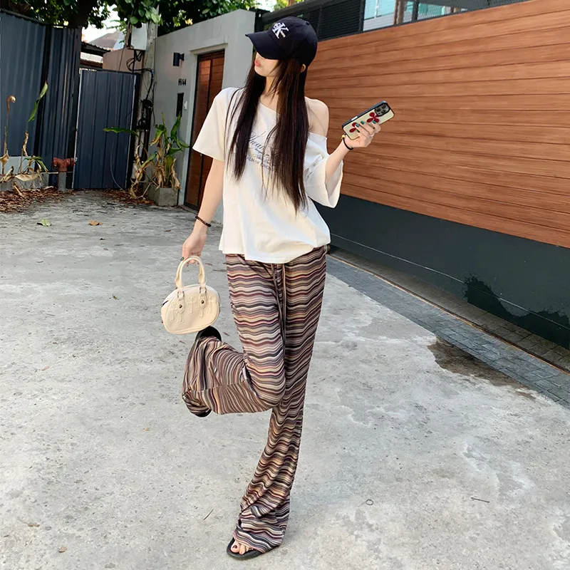 ZAZN Повседневные брюки Женские Полосы Коричневый