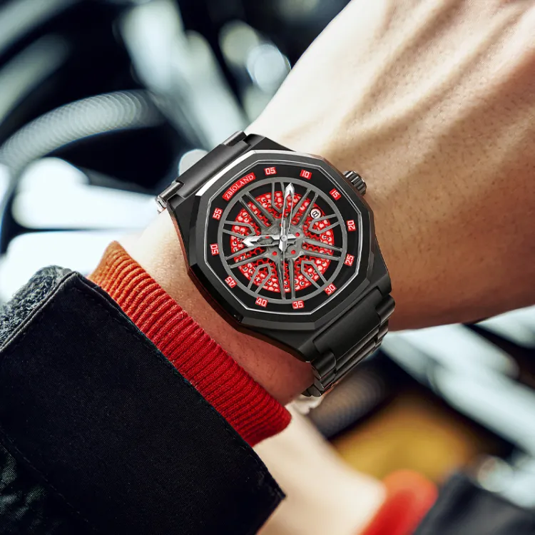 ZBL3660-A12 Все Черное Красный Циферблат Черный Стальной Браслет
