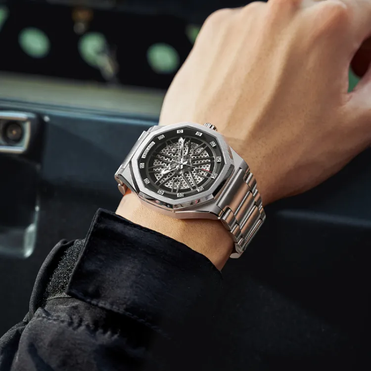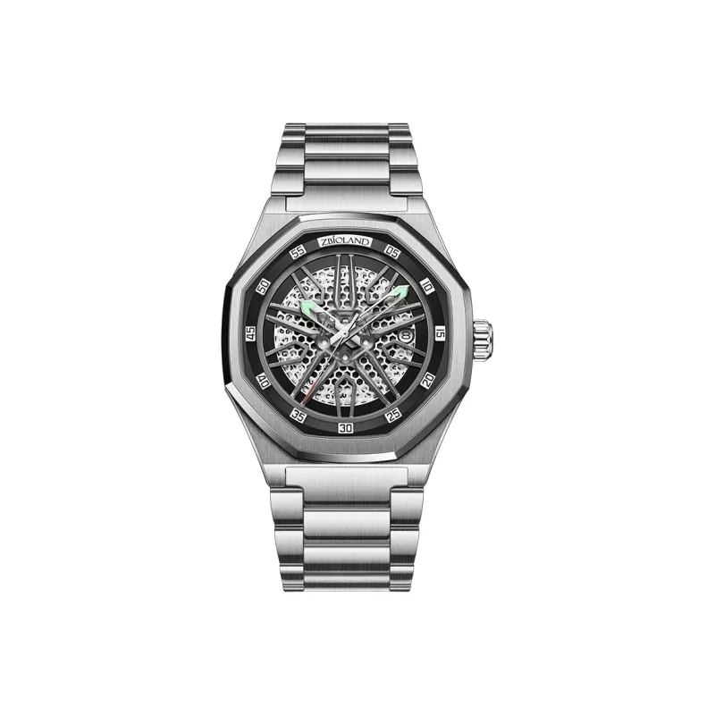 ZBIOLAND Автоматический Механический Механизм Стальной Ремешок Мужские Часы Серебристый Циферблат ZBL3660