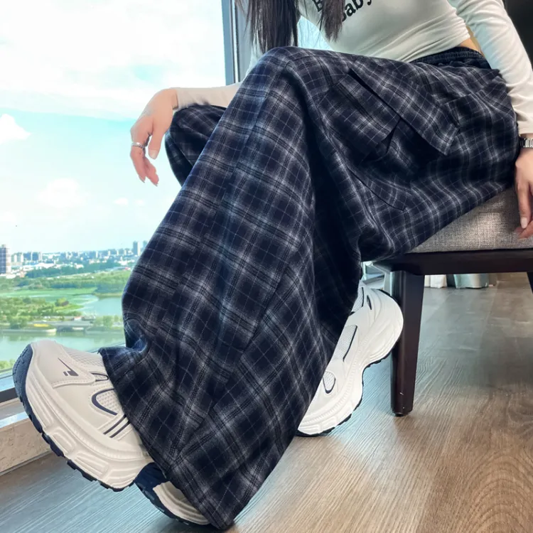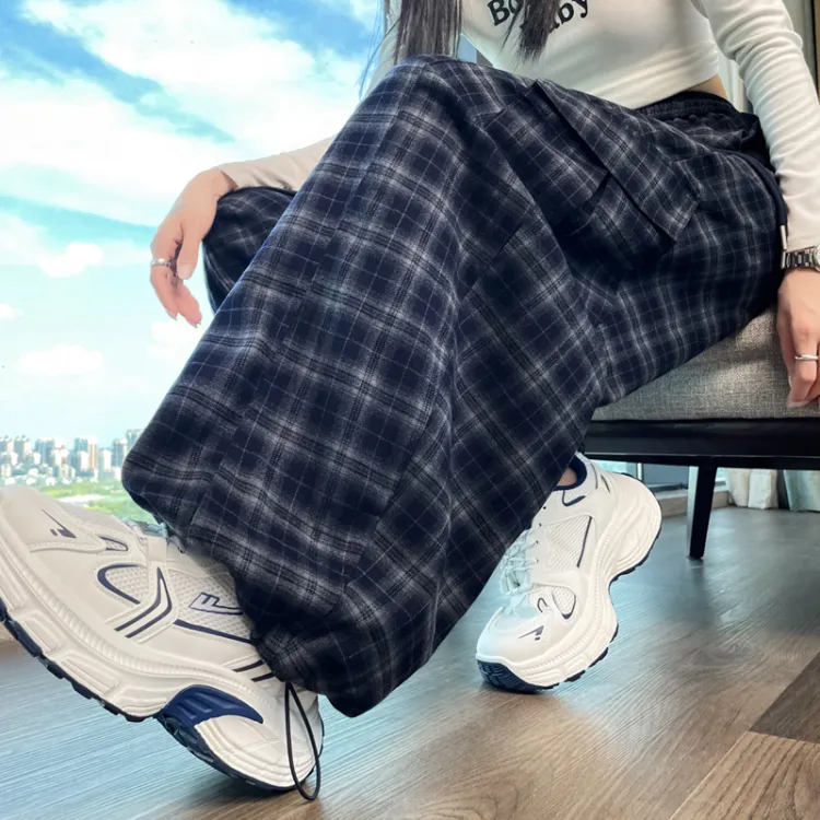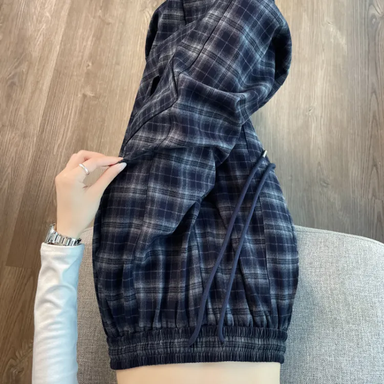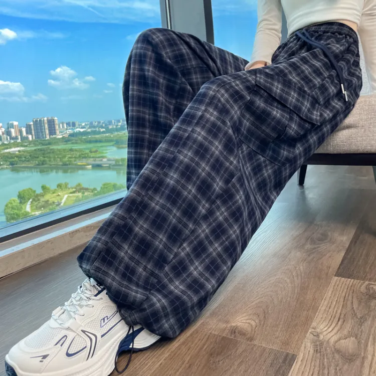 Темно-синий, синий, клетка, увеличенная длина, с флисовой подкладкой