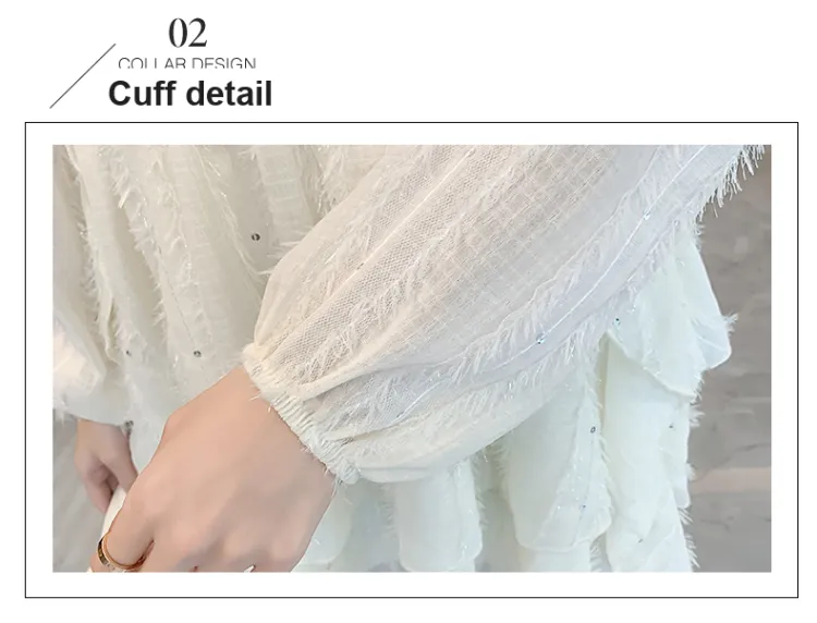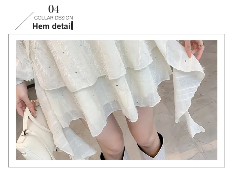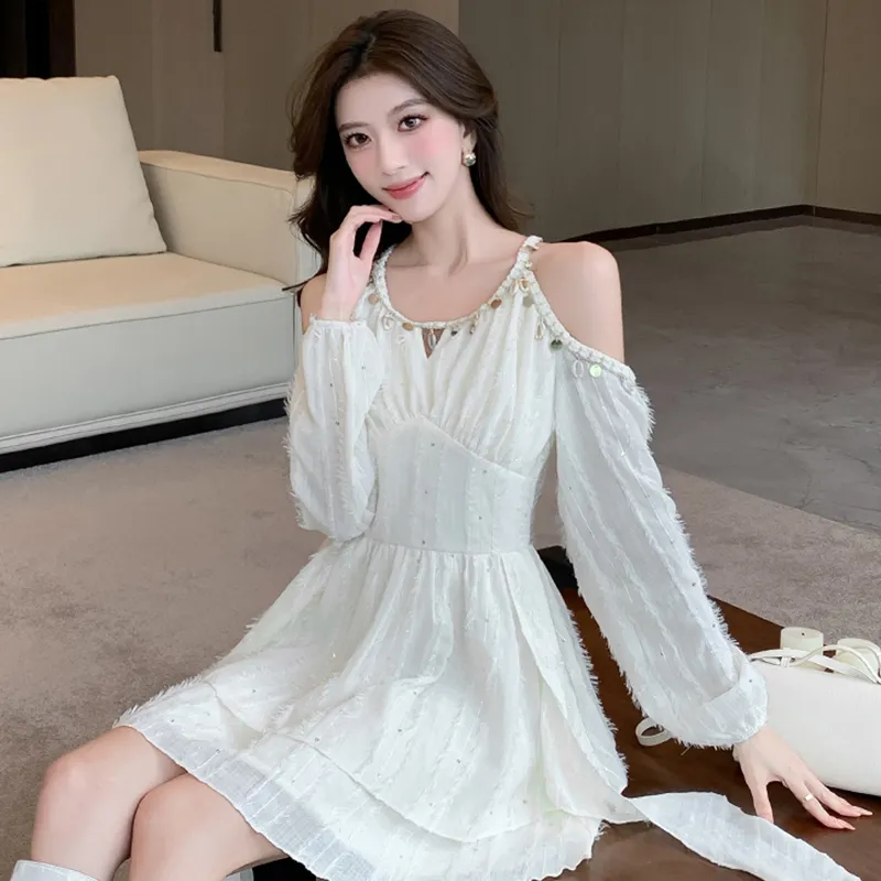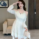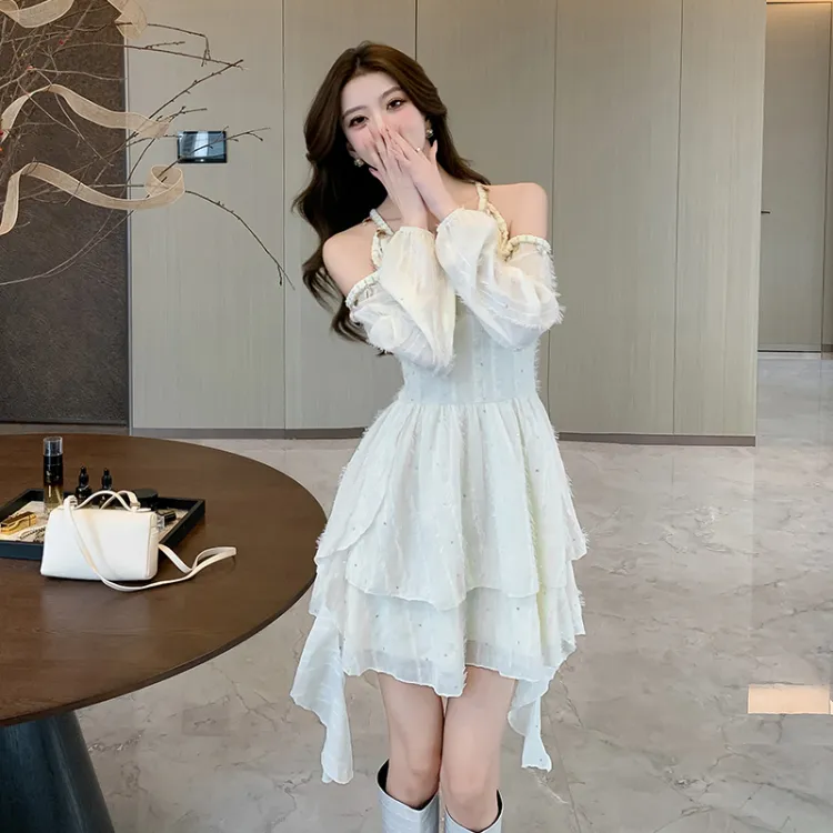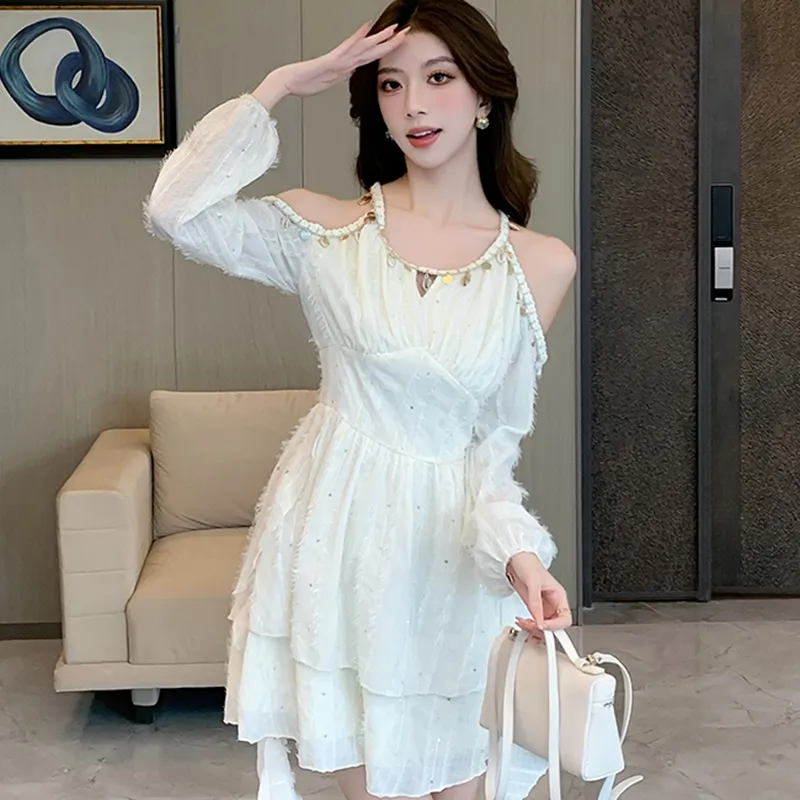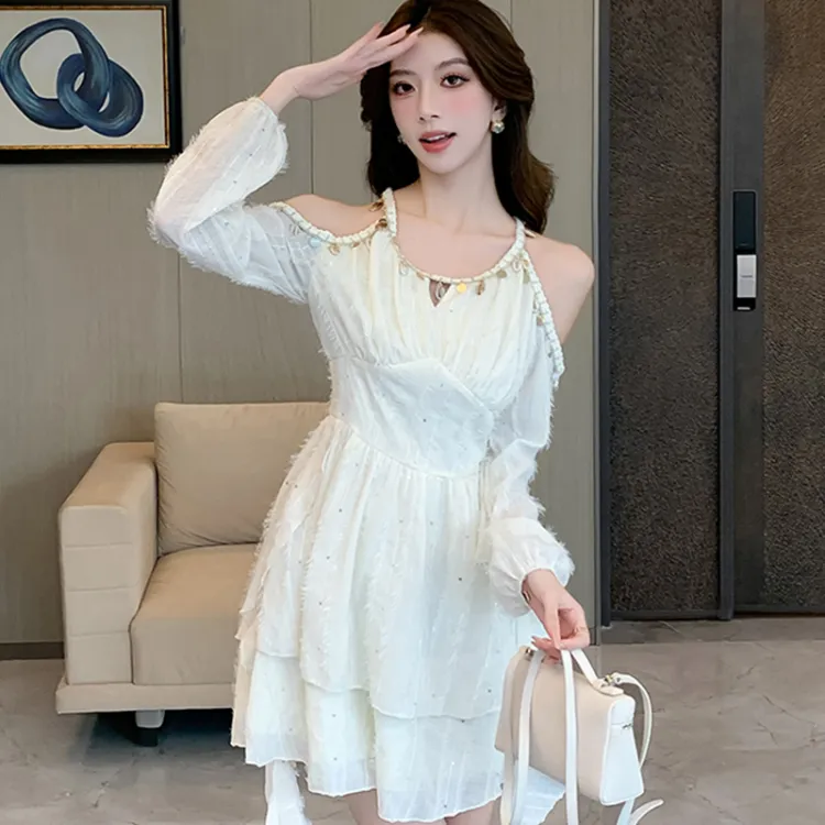 ZCDECO Длинное платье с длинными рукавами женское экрю