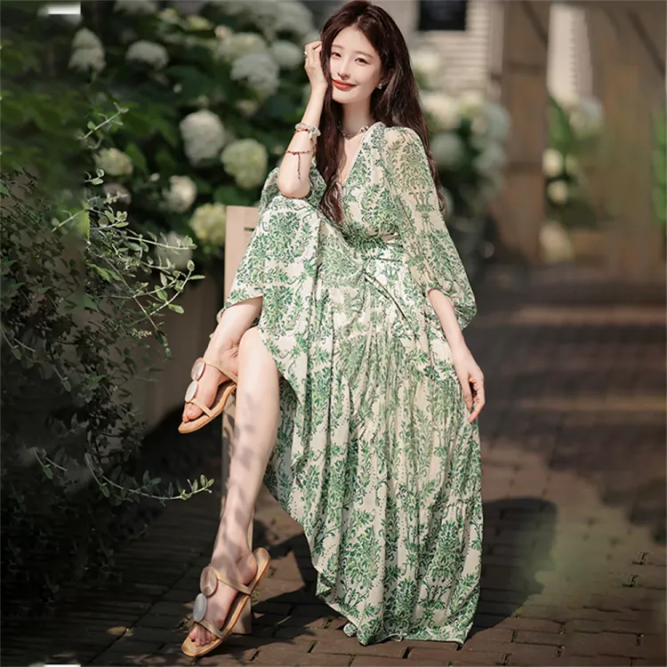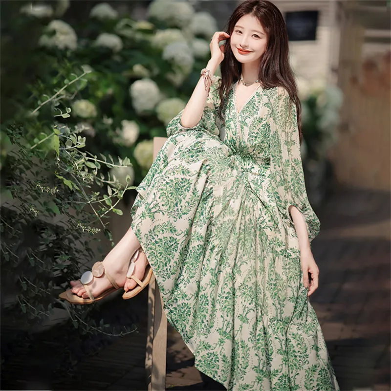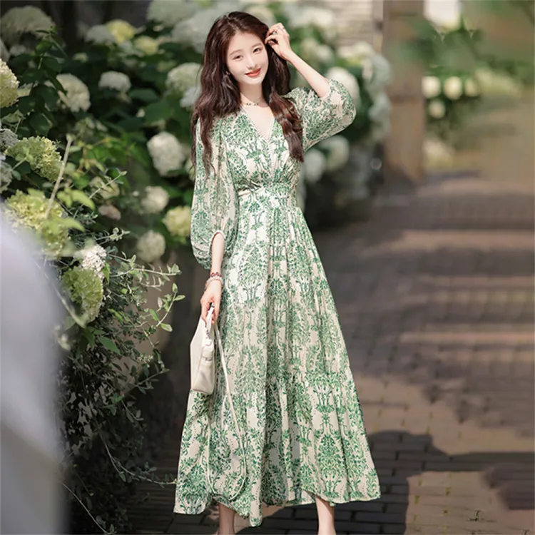 ZCDECO Длинное платье с длинными рукавами женское изумрудно-зеленый
