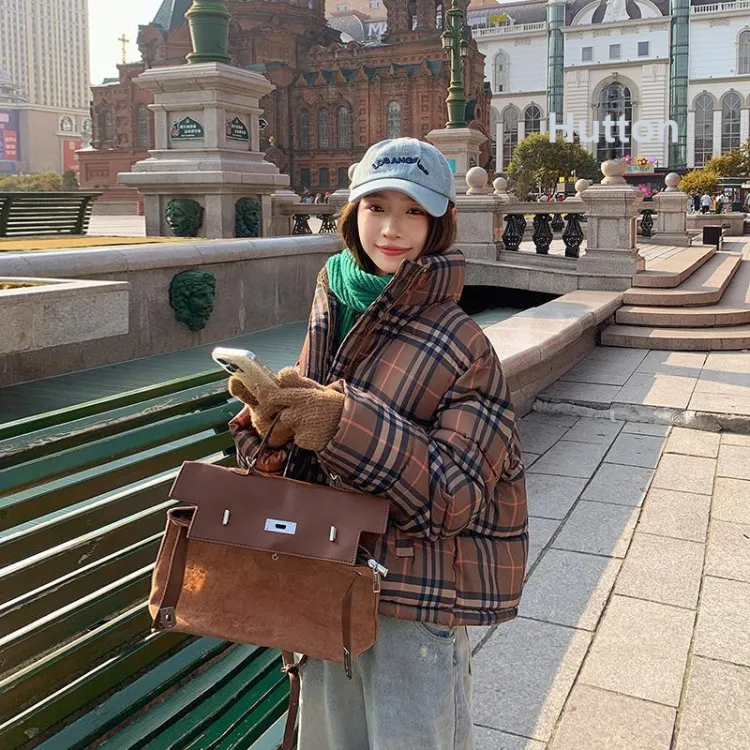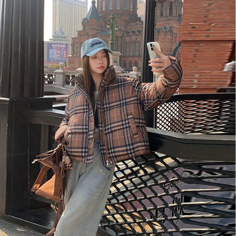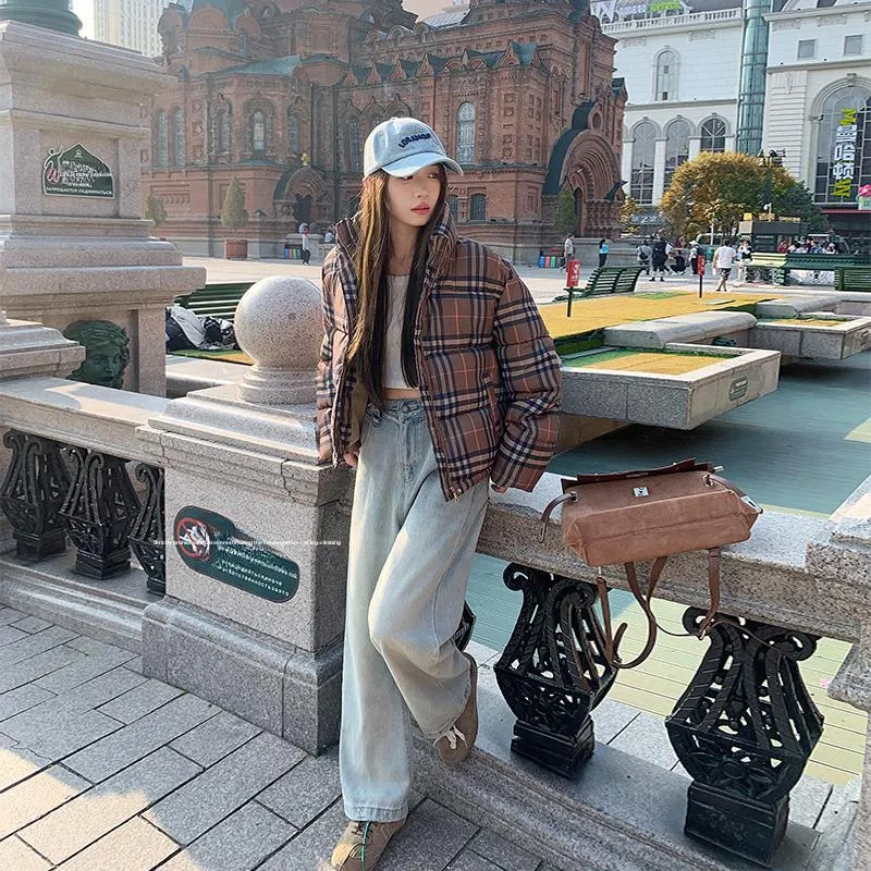 ZCDECO Хаки Клетка Женские Пуховики
