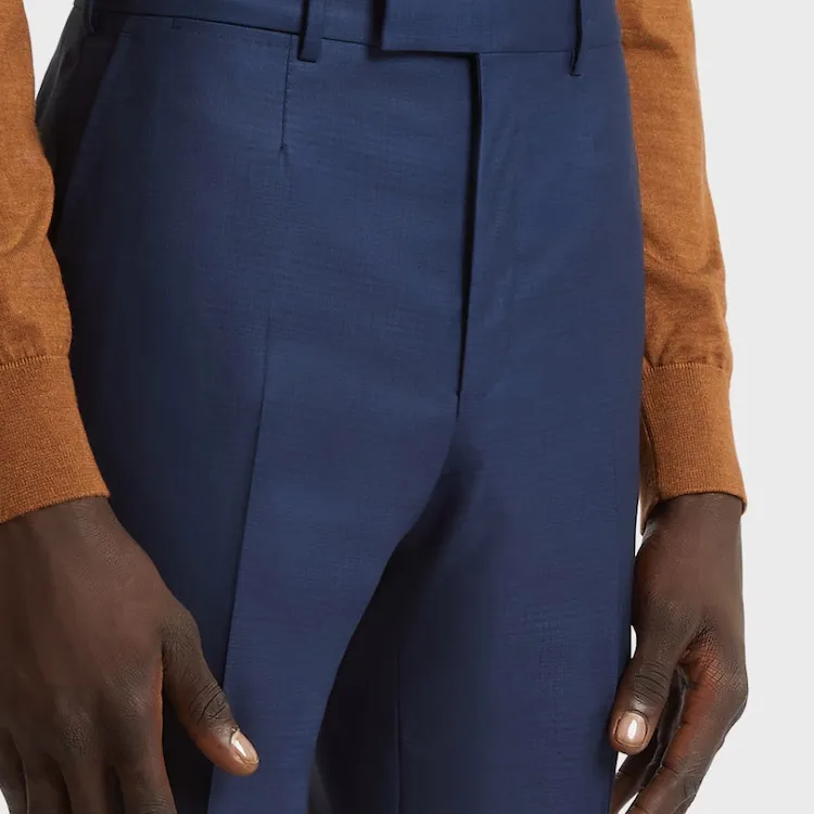 Ermenegildo Zegna Комплект Синий Бизнес Костюм Куртка + Синий Бизнес Костюм Брюки Мужской Бизнес Костюмы