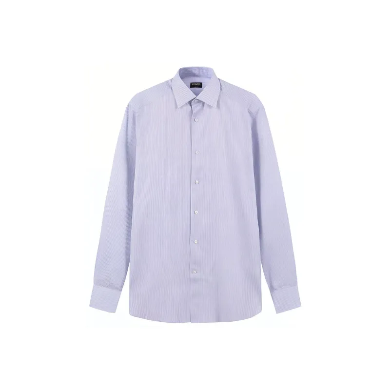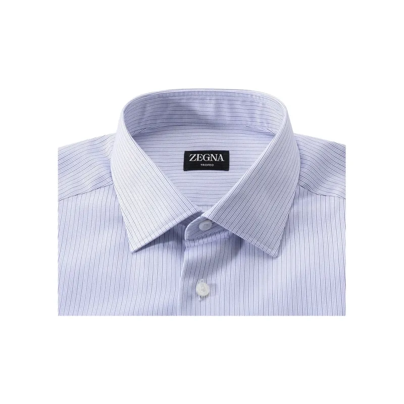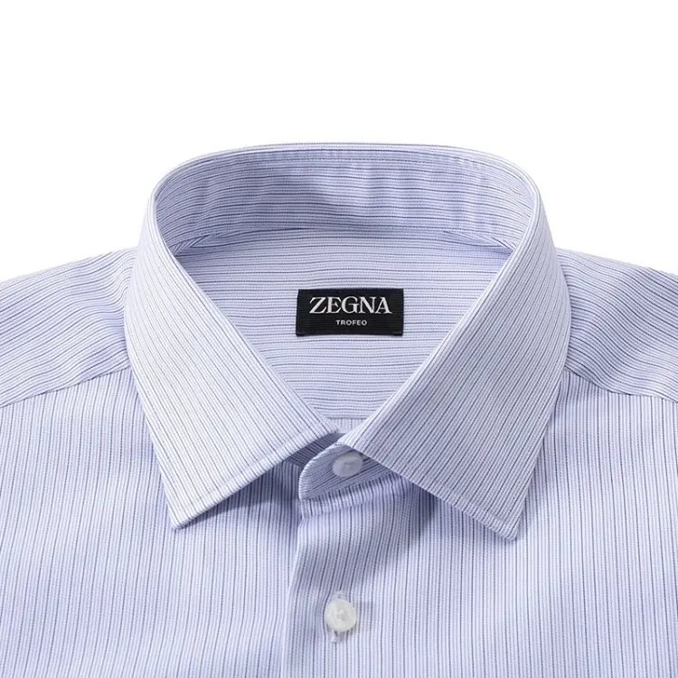 Zegna SS24 Рубашка Мужская Белая Подкладочная ткань Синяя